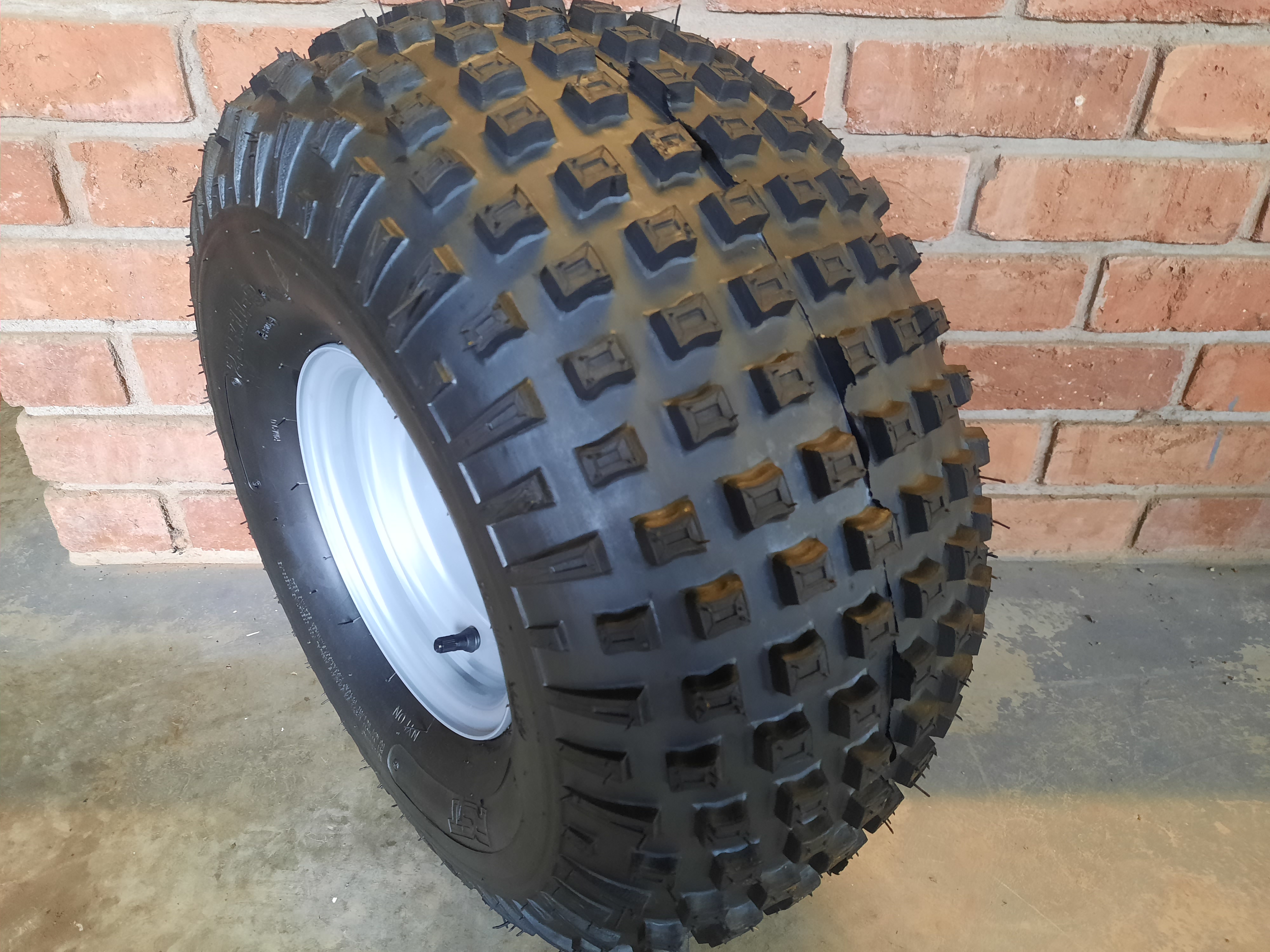 Enquire about our Wheel and Tyre c…A wheel and tyre size 22 x11x8 Floatation, Knobbly pattern (tubeless)